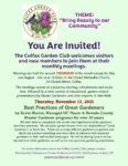 The Food Bank of Nevada County is offering Drive-Thru Distribution of food on the 2nd & 4th Thursdays between 10am-12pm at Grass Valley Seventh Day Adventist Church (12889 Osborn Hill Rd, Grass Valley, CA.) If you are unable to come during the distribution time, we may be able to help. Please sign up here if you ne , ...Colfax Garden Club Monthly Meeting10:00 am