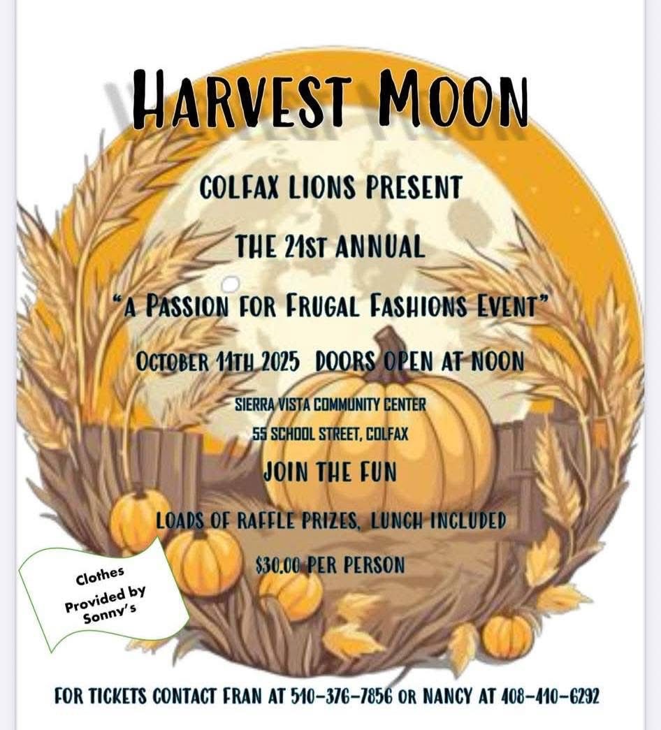 Harvest Moon. The 21st Annual “A Passion For Frufal Fashions Event For Tickets Contact Fran at (510) 376-7856 or Nancy at (408) 410-6292